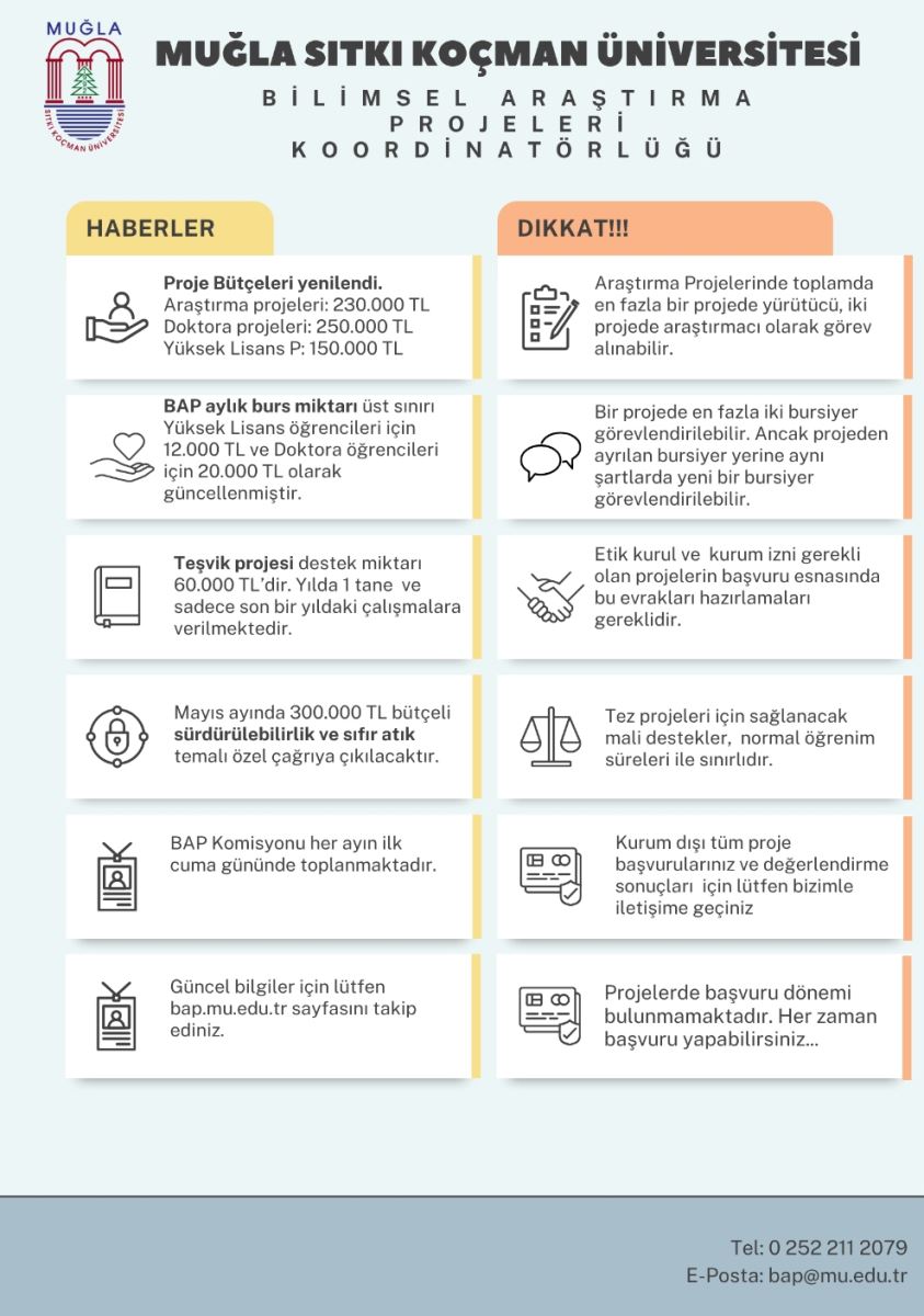 Bilimsel Araştırma Projeleri Hakkında Duyuru Bilimsel Araştırma Projeleri Koordinatörlüğü tarafından projeler için dikkat edilmesi gereken hususlar ve haberler paylaşıldı. Son Güncelleme : 13.04.2026 17:45 Okunma Sayısı : 52