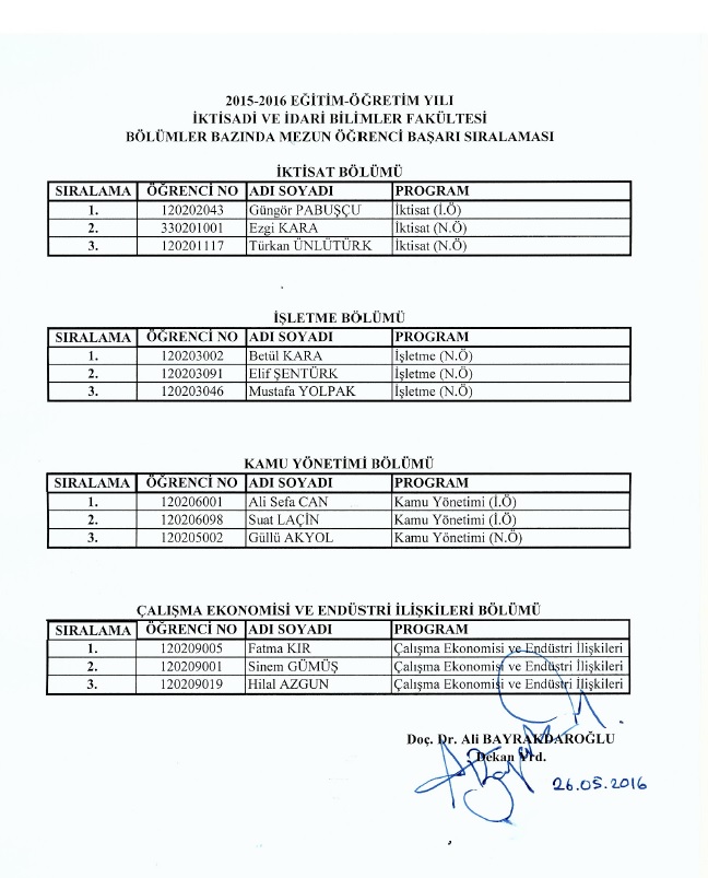 2015-2016 Eğitim-Öğretim Yılı itibari ile Fakültemiz Bölümlerinden derece ile mezun olan öğrencilerimize 31 Mayıs 2016 Salı günü saat 14.00’te Dekanlık Toplantı Salonunda belge takdim töreni yapılacaktır.